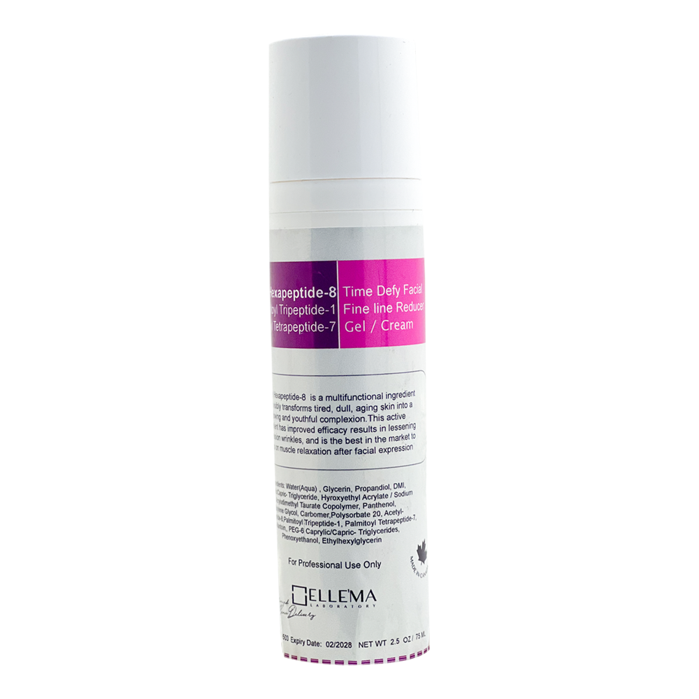 محصول Time Defy Facial یک فرمولاسیون کلینیکال مبتنی بر پپتیدهای بیومیمتیک است که با هدف کاهش خطوط دینامیک و استاتیک، مهار انقباضات میکروسکوپی عضلات صورت و بهبود کیفیت بافت پوست طراحی شده است.